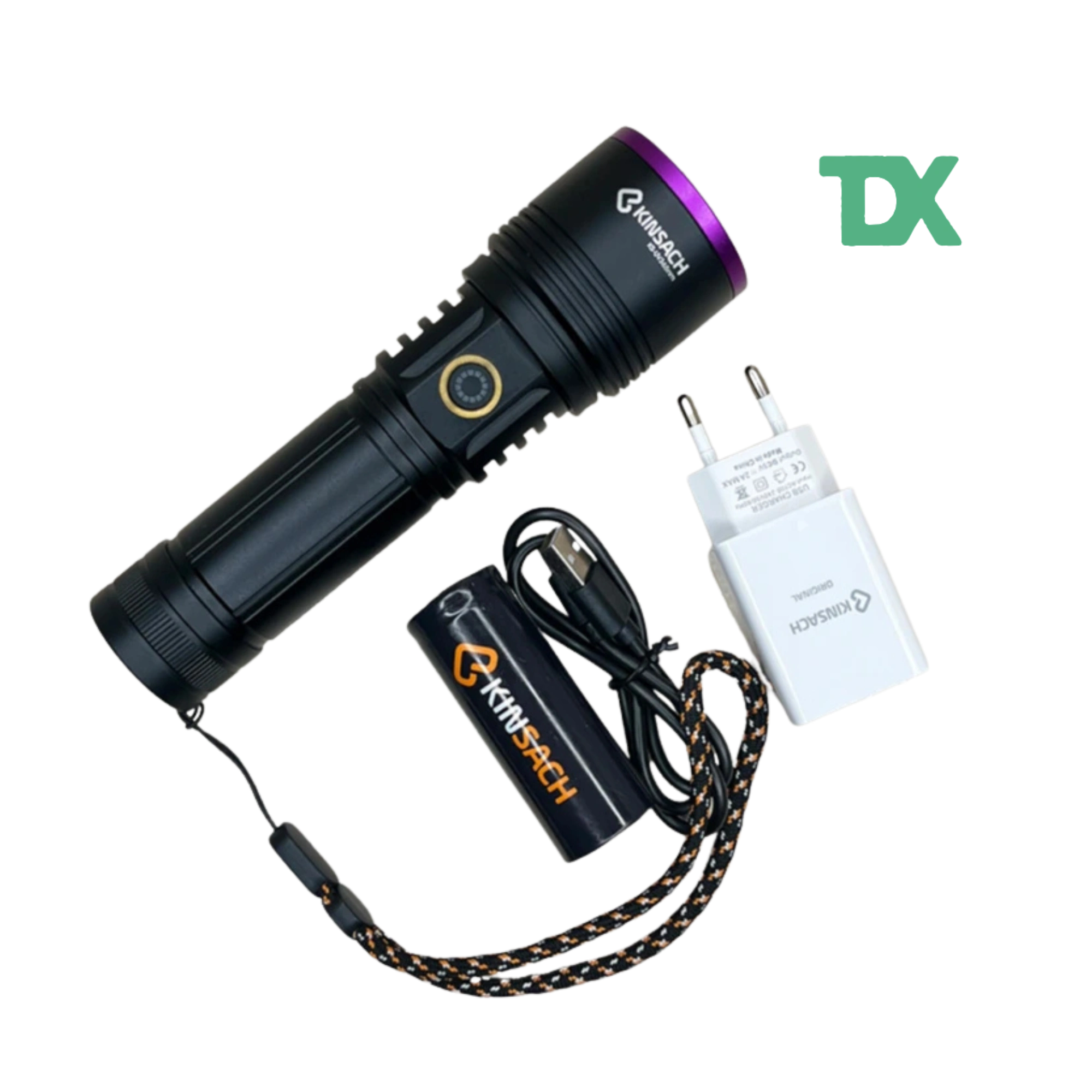 چراغ قوه یووی کینساچ مدل KS-UV365nm پاوربانکدار؛ مناسب برای تشخیص اسکناس جعلی، پیدا کردن لکهها، بررسی سنگها و ردیابی در طبیعت. خرید با بهترین قیمت از تیدکس استور (tidexstore.com).